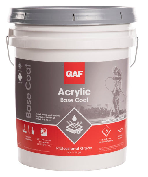 GAF Acrylic Base Coat is an elastomeric acrylic coating used in a basecoat/topcoat system to improve the adhesion of GAF Acrylic Top Coat. APPROVED...