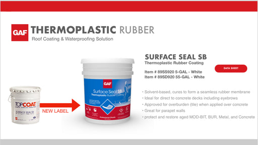 GAF Surface Seal SB is a solvent-based, sprayable thermoplastic rubber sealant, which cures to form a seamless rubber membrane. It is highly refle...